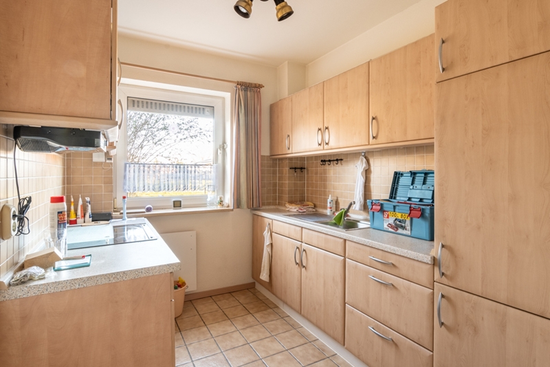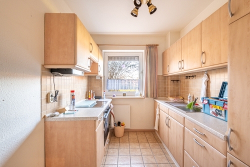 - Einbauküche inkl. Backofen, Cerankochfeld, Kühlschrank, Unter- und Oberschränke, Stellplatz für die Wasch-/Geschirrspülmaschine