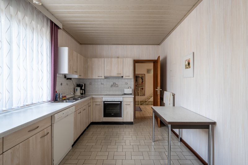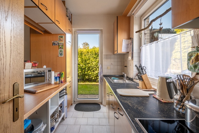 - Gepflegte Einbauküche inkl. Backofen und Cerankochfeld, Unter- und Oberschränke, Durchreiche in Wohn-/Esszimmer sowie Ausgang zum Garten