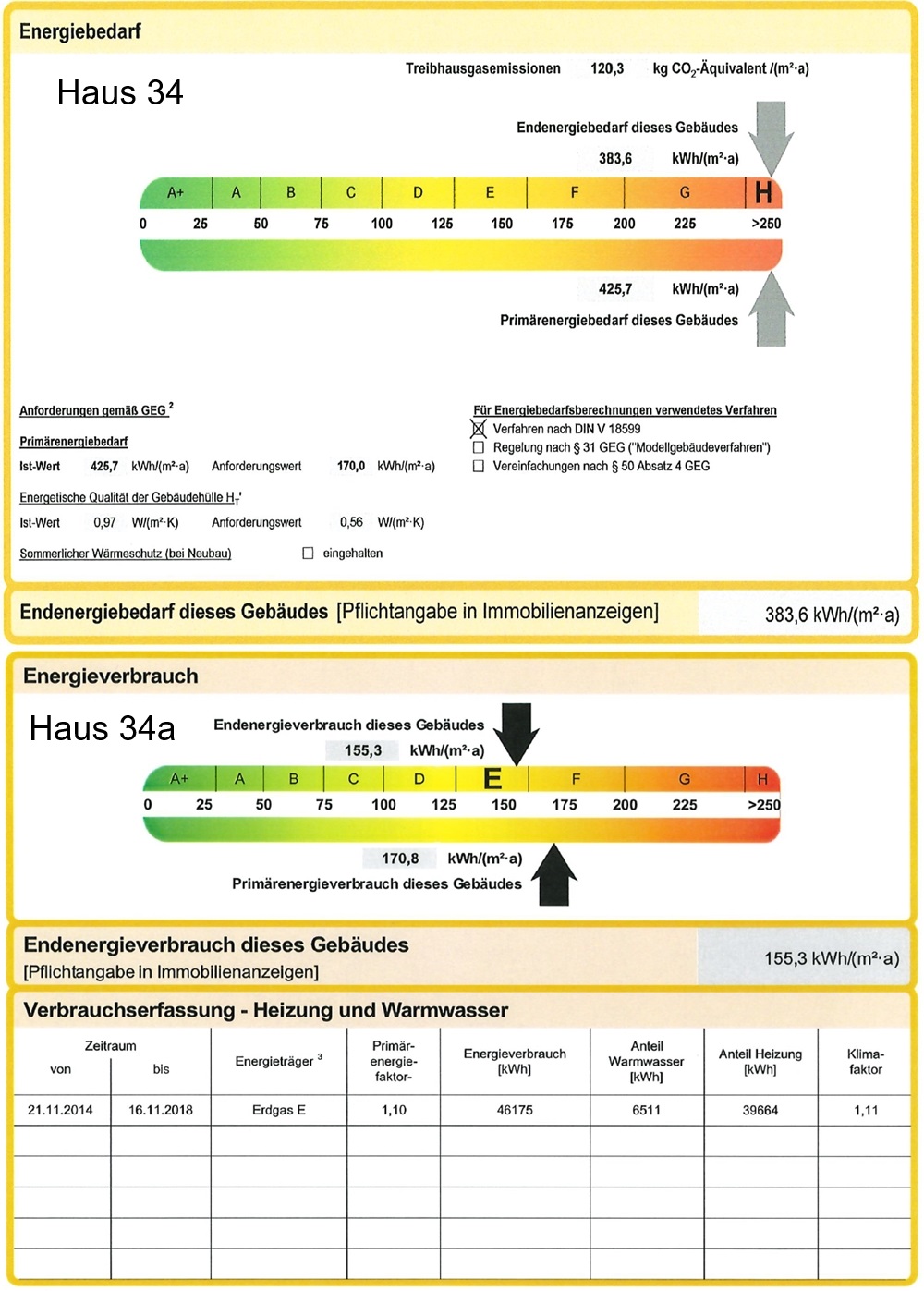 Energiewert: | 383,6 kWh/(m²a) & 155,3 kWh/(m²a) | ||