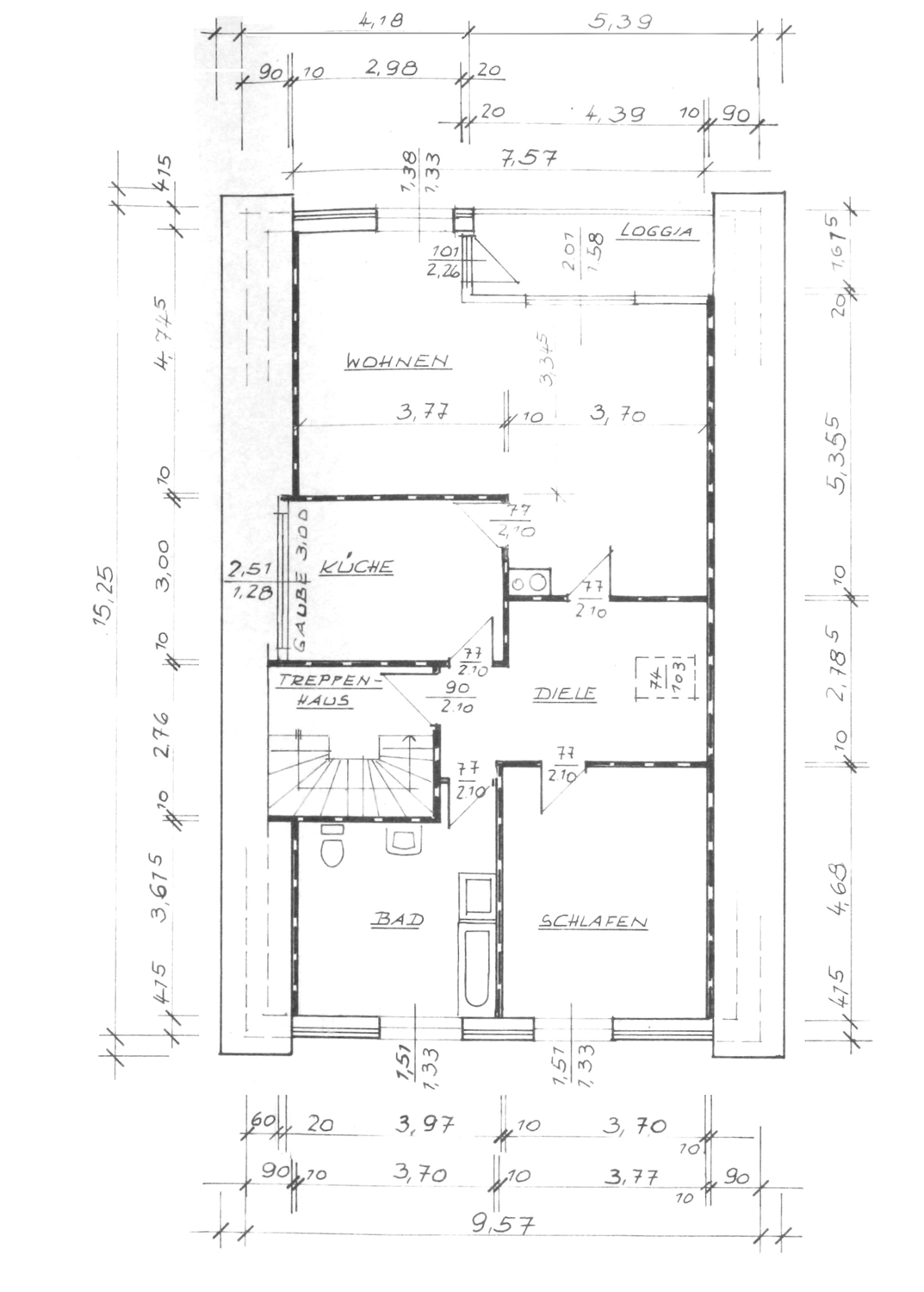 Im Erdgeschoss stehen neben dem lichtdurchfluteten Wohnzimmer, ein großzügiger Essbereich, drei Schlafzimmer, die Küche, ein Gäste WC und ein herrliches Tageslichtbad zur Verfügung. Ein lichtdurchflutetes Wohn- und Esszimmer, ein großzügiges Tageslichtbad, eine Küche, ein Schlafzimmer und eine Diele stehen im Obergeschoss zur Verfügung. Des Weiteren verfügt das Obergeschoss über eine Loggia mit Blick in den schön angelegten Garten.