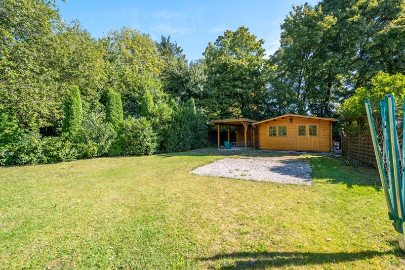 Das herrliche und sonnige Gartenparadies bietet allen Familienmitgliedern Freiheit und Raum für Spaß und Erholung. Während Sie Ihren Kindern beim Spielen im Garten zusehen, laden die sonnigen Terrassenbereiche zum Sitzen und Verweilen ein. Auch an regnerischen Tagen bietet die Terrassenüberdachung ein trockenes Plätzchen. Unterschiedliche, zum Teil blühende, Büsche und Pflanzen verleihen dem Garten eine ruhige und natürliche Atmosphäre. Platz für die Fahrräder und Gartengeräte bietet das großzügiges Holzgartenhaus mit angrenzendem Carport am Ende des Grundstücks.