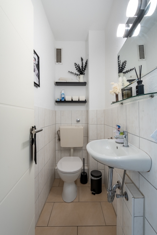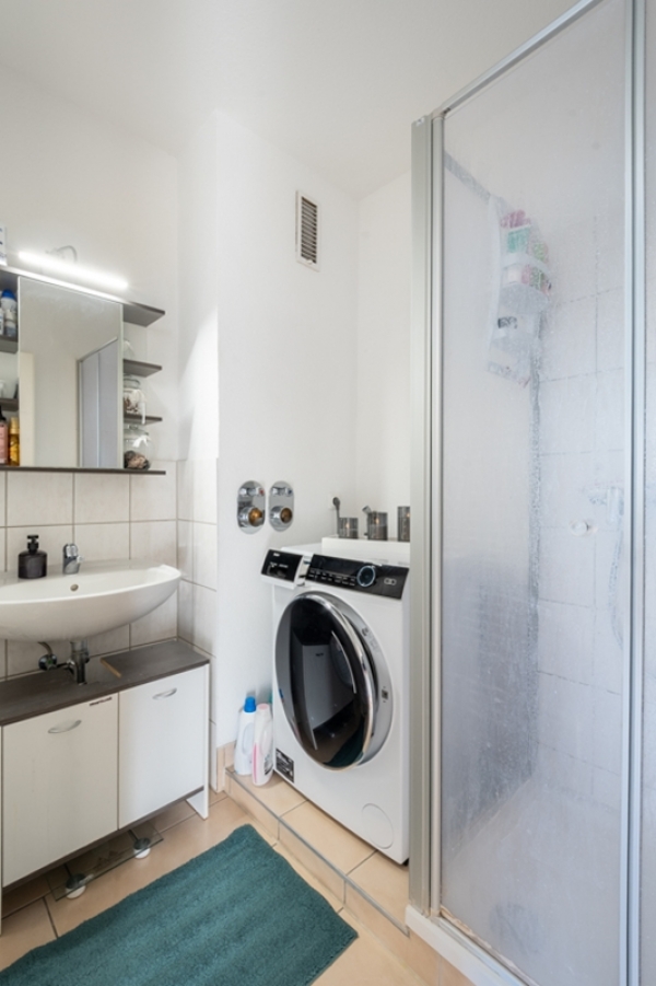 - Modernes Duschbad mit Waschmaschinenanschluss, separates WC
