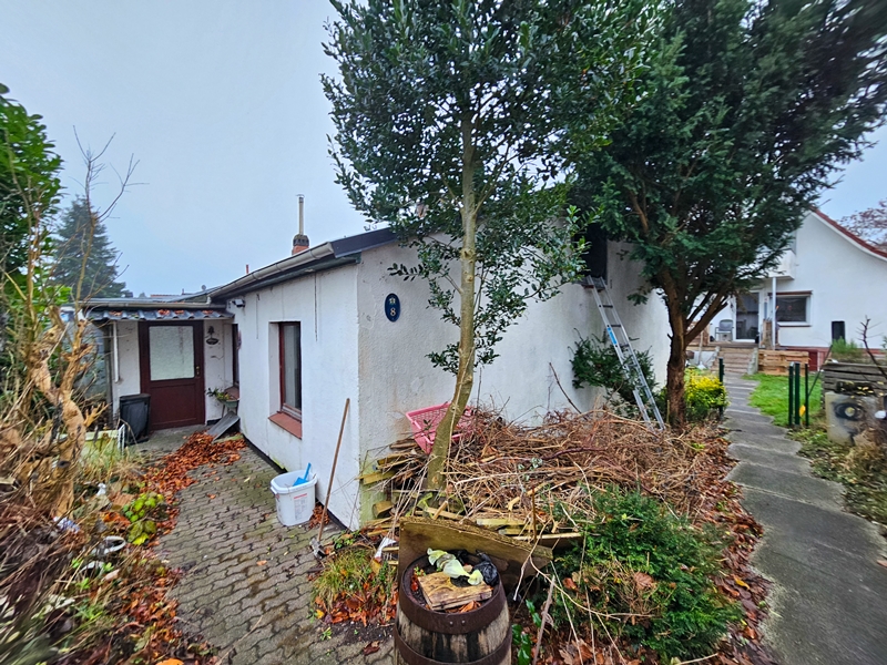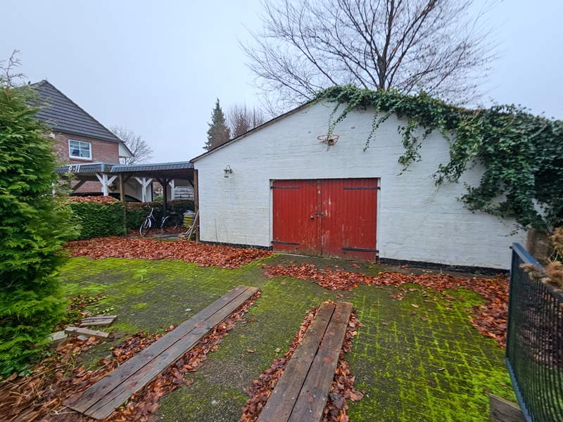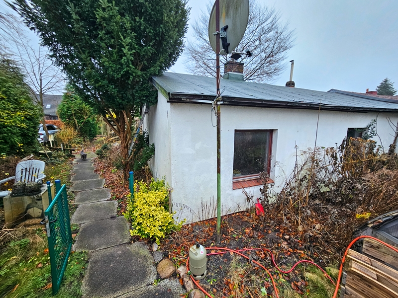 Das Grundstück ist mit einem massiven, eigeschossigen Gartengebäude (Grundfläche ca. 97m²) und einer massiven Garage mit angrenzendem Carport (Grundfläche ca. 80m²) bebaut. Das Gartengebäude (Altbestand) ist ortsüblich erschlossen (Ölheizung mit oberirdischem Öltank ca. 1.000 Liter).