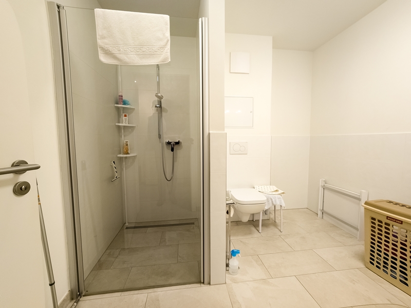 - Modernes Duschbad mit ebenerdiger Dusche, Waschmaschinenanschluss und Fußbodenerwärmung