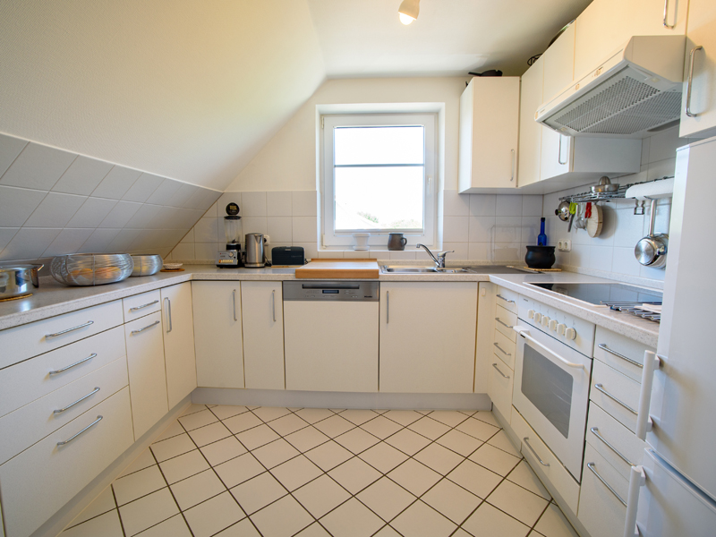 - Einbauküche inkl. Kühlschrank, Geschirrspüler und Backofen und Cerankochfeld sowie Obere- und Unterschränke