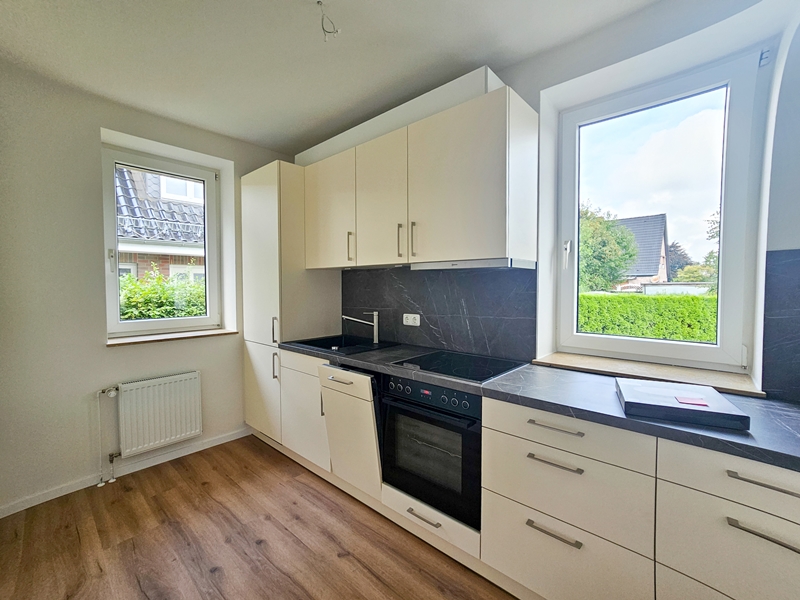 - Neue, helle Einbauküche inkl. Herd, Cerankochfeld, Geschirrspüler, Kühlschrank, Unter und Oberschränke