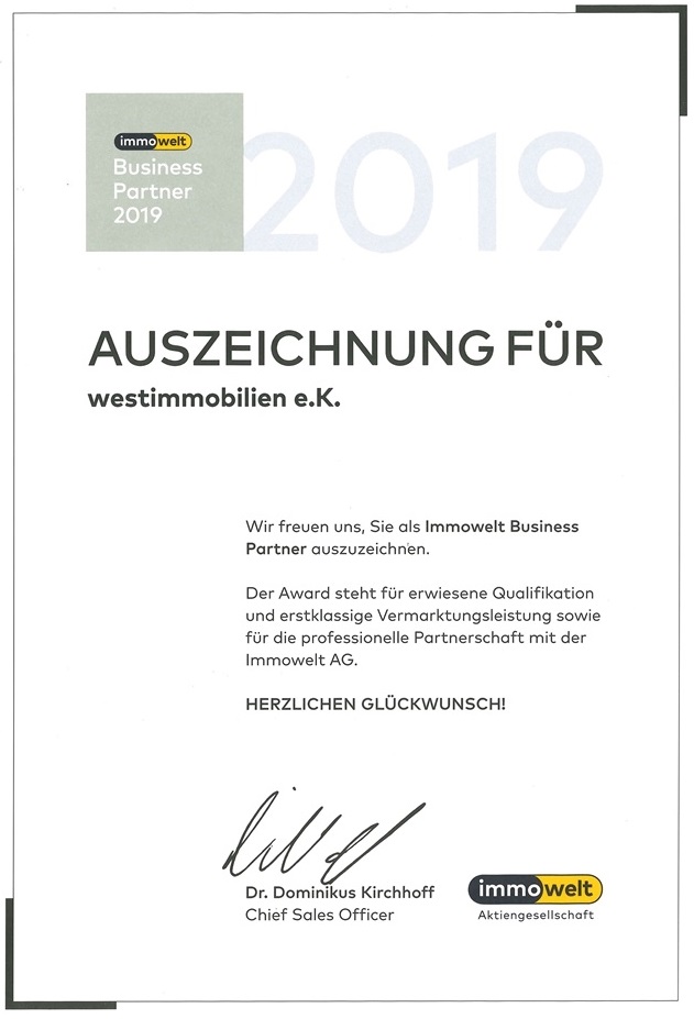 Auszeichnung zum immowelt Business Partner 2019