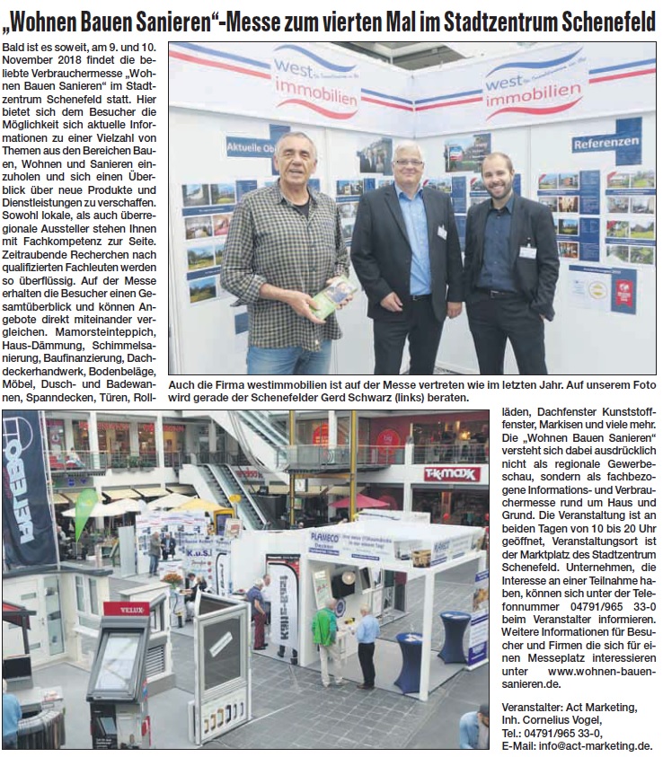 Nur noch wenige Tage bis zur Messe Wohnen+Bauen+Sanieren im Stadtzentrum Schenefeld