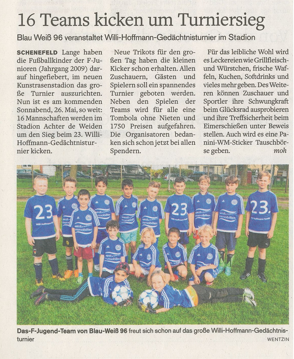 Westimmobilien unterstützt die Fußballjugend von Blau-Weiß 96 Schenefeld